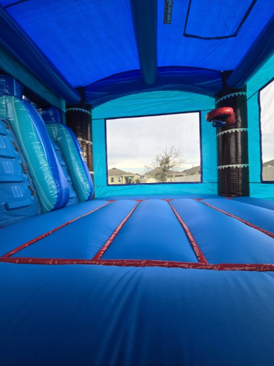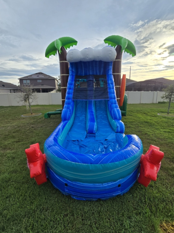 With its eye-catching tropical theme, the Aloha Beach Party Bounce House is sure to be the centerpiece of any party. Not only does it add a festive touch to your event, but it also helps you beat the heat with its refreshing splash pool at the bottom of the slide. It's the perfect way to stay cool while having a blast during the scorching summer months or even in the winter!