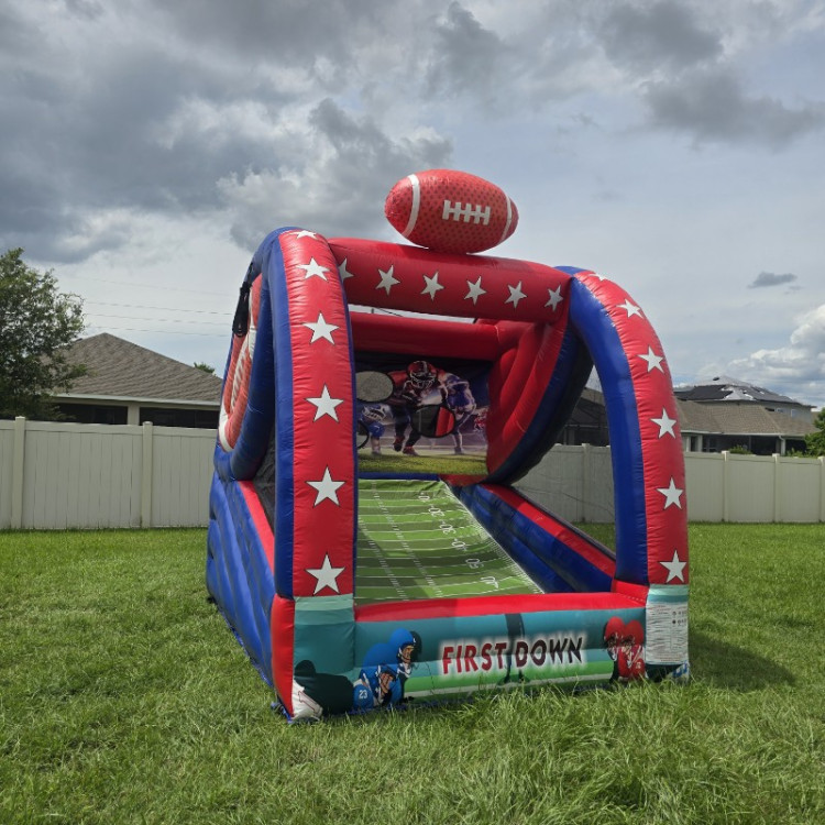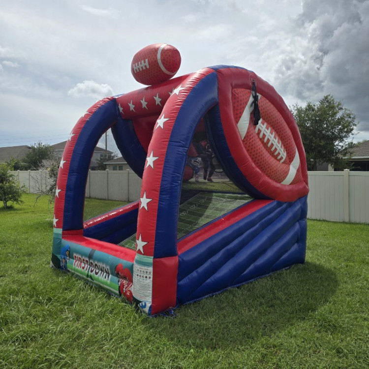 Bring competitive fun to your event with this Football Toss game. Players test their accuracy and aim by throwing footballs toward designated targets or through scoring zones. Compact and easy to set up, it’s ideal for tailgates, school fairs, company picnics, birthday parties, and fundraising events. Durable construction stands up to repeated use, while the simple rules make it accessible to kids and adults alike. Perfect as a standalone attraction or paired with other lawn games to keep guests entertained and engaged.